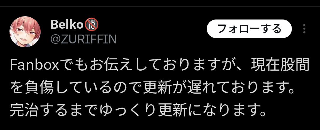 股間を負傷して更新が遅れるということは