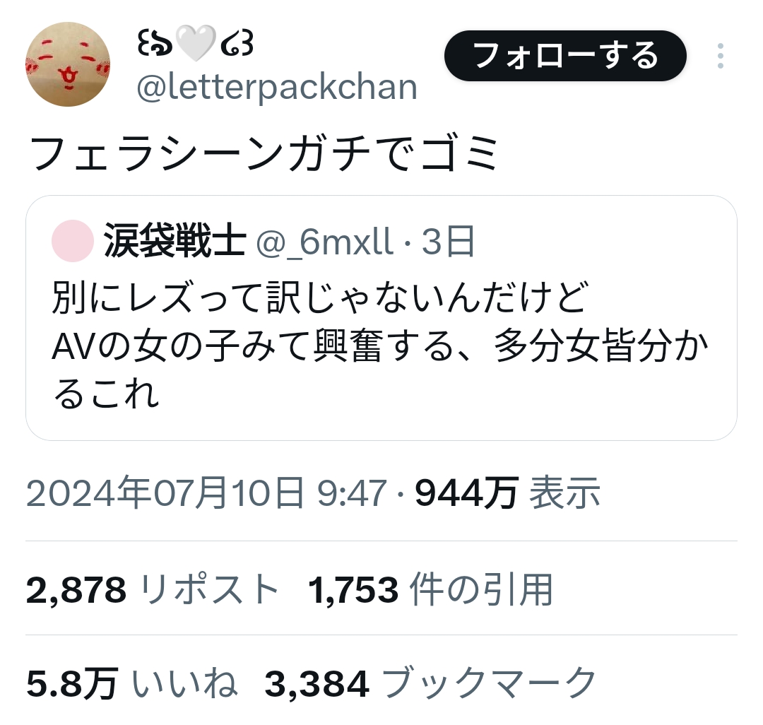 まあこレは種つけプレスで男のケツ見て抜くとかホモかよみたいなのと同じだぞ