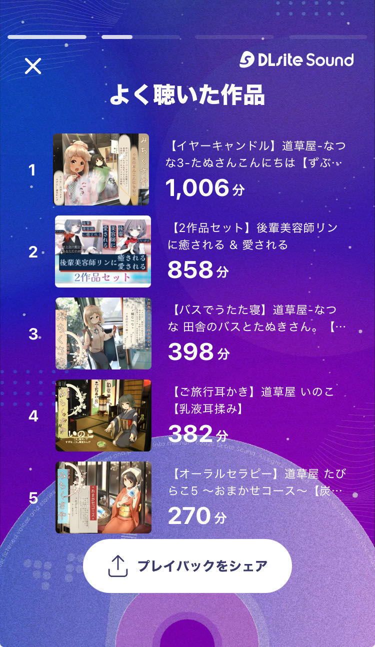 >dlsite playで聴いた分も計上される