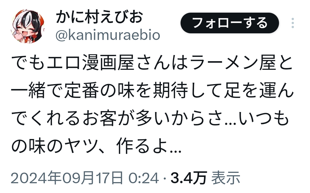 生産ペースが早くて漫画描きまくってる人がまさにいつもの味タイプで助かるんだけど風の噂で俺が読んでた全年齢週刊連載の作家という噂を聞いて流石に違うだろ…!?って気持ちを抱いたまま真実は闇の中